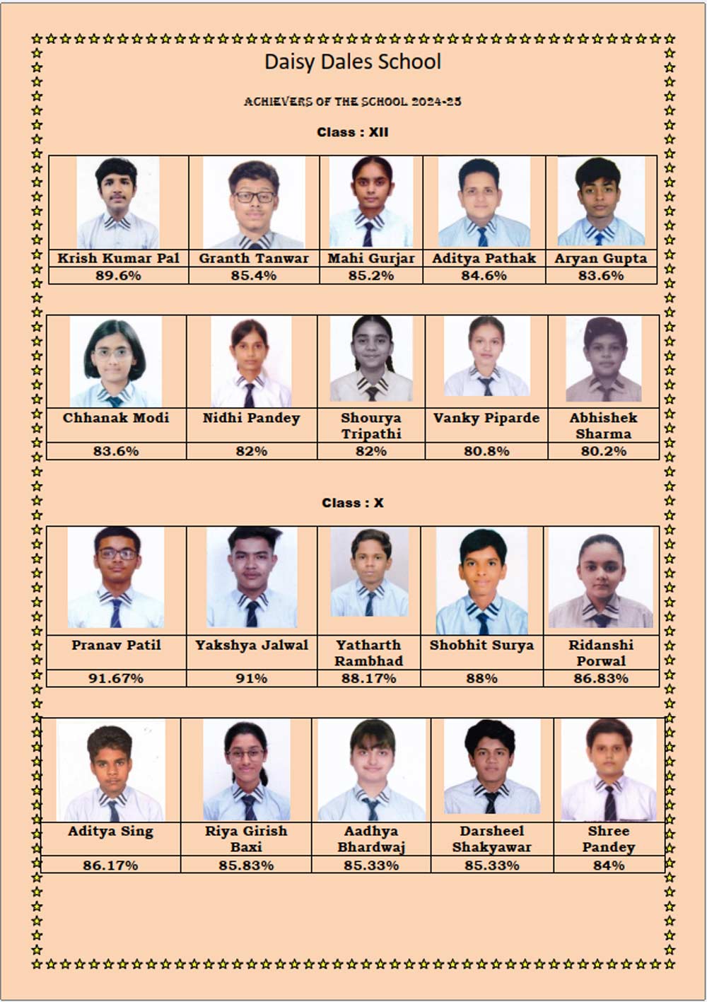 Daisy Dales Sr. Sec. School, Indore, established in 1990 at a small level in a sprawling campus in pollution free environment at Scheme No. 78 (II). Slowly and steadily the school progressed and expanded in its endeavor of meeting the educational requirements of a large community. The school got affiliated to CBSE, New Delhi ( No. 1030389). From its humble origin of 40 students, the school has grown to a full fledge institution. It is regarded as one of the premier institutions of Indore by providing quality education to the students of Indore. The school has acquired a unique system of motivational learning and self-discipline and is well known for a sound character formation and quest for excellence. The school has a legacy of excellence in curricular and co-curricular fields and it is marching forward receiving and winning laurels in various spheres.